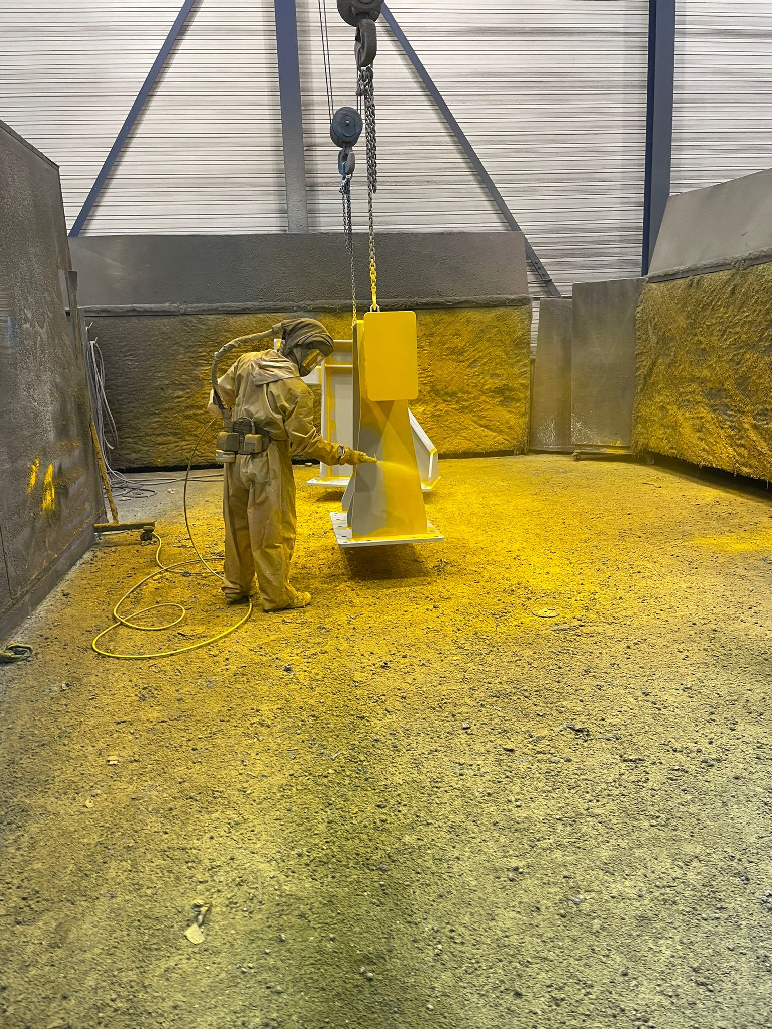 Door de ruime straalcapaciteit kan Straalbedrijf Holland West B.V. grote objecten stralen tot een afmeting van 29 x 7 x 5 meter, met een gewicht tot 32 ton. Deze straalcapaciteit sluit uitstekend aan bij de Staalcoating hal XXL en zorgt voor een efficiënte toevoer van materialen naar de Constructiecoating hal en de Hangcoating hal.